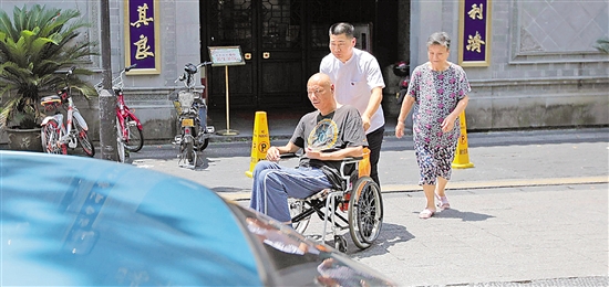 诊疗结束,陈志飞来接孙月华母子回家。 本报记者 汪驰超 摄