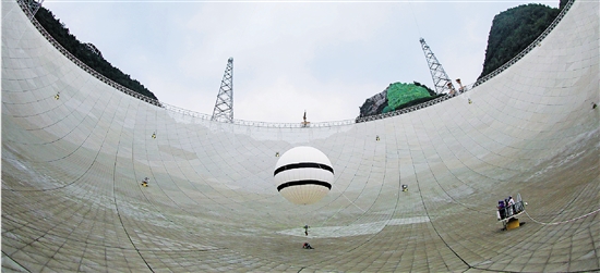 | 自2017年10月10日首次对外宣布发现脉冲星以来,截至目前,被誉为“中国天眼”的500米口径球面射电望远镜已发现132颗优质的脉冲星候选体,其中有93颗已被确认为新发现的脉冲星。脉冲星的密度极高,每个立方厘米就重达上亿吨,换句话说,一块方糖大小,就相当于地球上一万艘万吨巨轮的总重量。图为8月30日, “微重力蜘蛛人”在“中国天眼”反射面板上进行巡检和维护作业。 新华社记者 欧东衢 摄 |