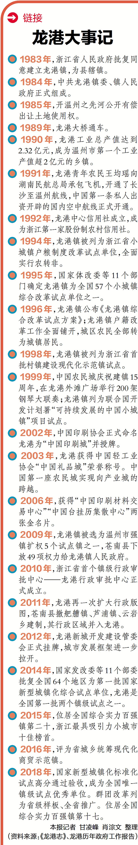 2003年,龙港获得中国轻工业协会“中国礼品城”荣誉称号。中国第一座农民城实现向产业城的跨越。