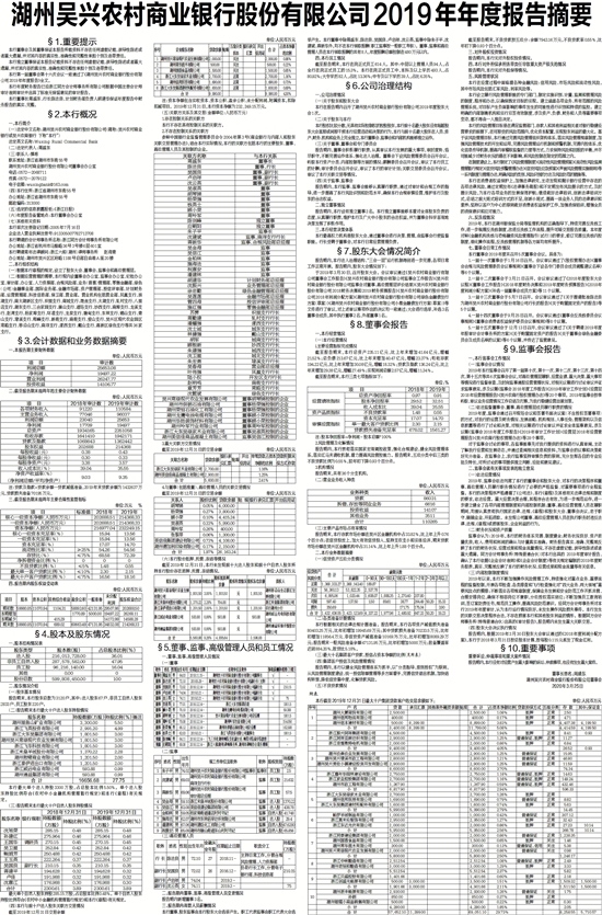 湖州吴兴农村商业银行股份有限公司2019年年度报告摘要