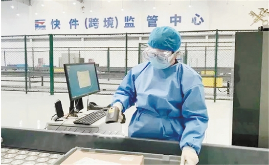 义乌快件(跨境)监管中心内,工作人员对进口包裹进行消杀。
