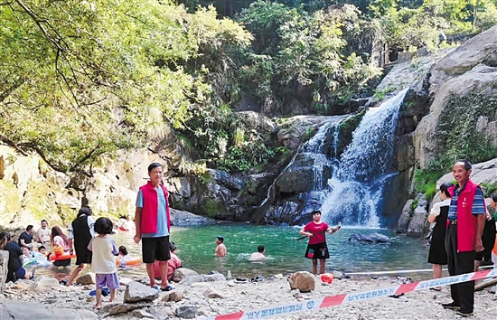 | 炎炎夏日,柯城区七里乡自发组建了一支党员志愿者服务队进行防溺水巡逻宣传。志愿者们在乡域内河流、池塘、水体景观等重点区域开展全面巡查,及时劝返在危险水域游泳、戏水的群众,通过文明劝导和宣传防溺水知识,为暑期学生和游客撑起“安全伞”。 余圣杰 摄 |