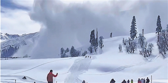 这张2月1日拍摄的视频截图显示的是印控克什米尔滑雪胜地古尔默尔格的雪崩现场。据外媒报道,滑雪胜地古尔默尔格1日发生雪崩,导致两名来自波兰的滑雪者遇难,另有21人获救。 新华社发