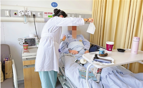 浙大邵逸夫医院呼吸治疗师许颖正在为一名患者进行呼吸训练。 本报记者 郑文 摄
