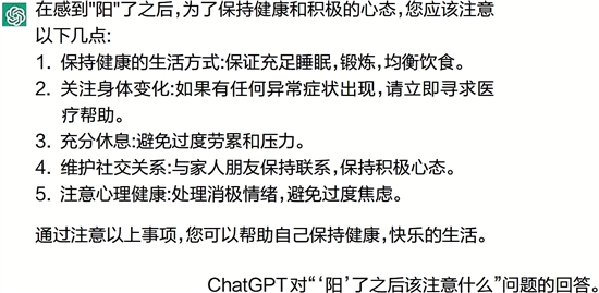 ChatGPT对“‘阳’了之后该注意什么”问题的回答。