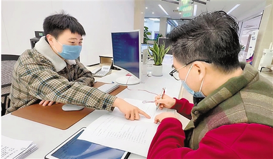 在临平企业服务中心服务窗口,助企服务员正在解答问题。 拍友 徐克涛 摄