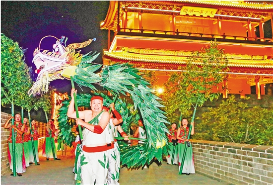 6月2日至3日,来自安吉的非遗传承人和民间文艺工作者在北京居庸关长城开展以竹为主题的“竹乡灯火 照亮长城”活动,表演竹乐、竹叶龙等,展示非遗机器人、竹艺灯具、竹编工艺品等,吸引不少夜游长城的游客观看。 本报记者 李世超 拍友 潘学康 摄 |