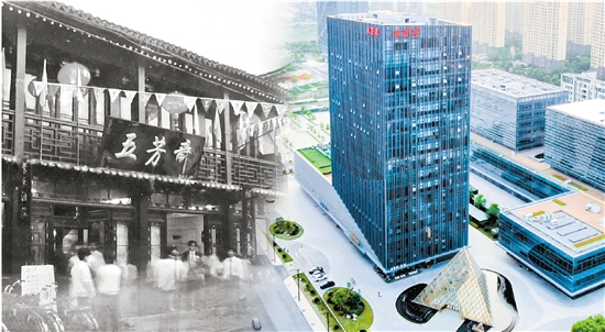 1985年的嘉兴五芳斋粽子店与2021年启用的五芳斋总部大厦