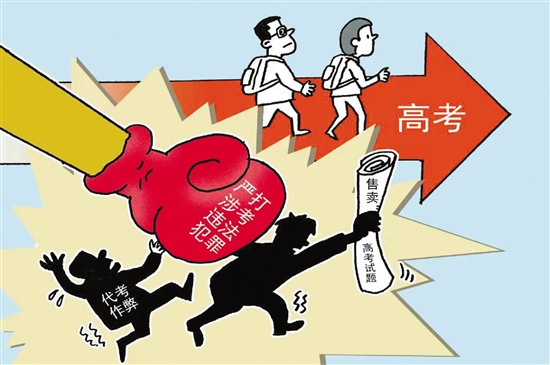 | 高考前夕,全国公安机关和教育部门重拳出击,对各类涉考违法犯罪活动继续保持高压严打态势,依法严惩组织考试作弊及非法生产、销售窃听窃照专用器材违法犯罪人员。两部门提醒考生,切勿携带手机等电子设备进入考点考场,以免触犯考规考纪;切勿相信售卖高考试题、答案等网上信息,以免上当受骗。 高晓建 作 |