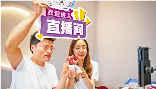 兰溪农创客通过线上直播为家乡杨梅吆喝。 本报记者 薛文春 拍友 胡肖飞 摄