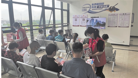 位于蒋葭浦村的共享法庭,村民正在收看法制宣传片。