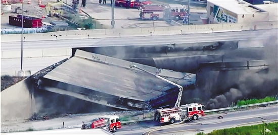 ▶ 这是6月11日在美国费城拍摄的发生垮塌事故的95号州际公路(视频截图)。