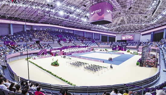 黄龙体育馆的体育展示 本报记者 姚颖康 朱海伟 摄