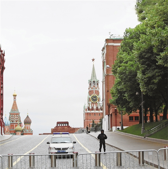 6月24日,执勤人员在俄罗斯莫斯科红场附近警戒。 新华社发