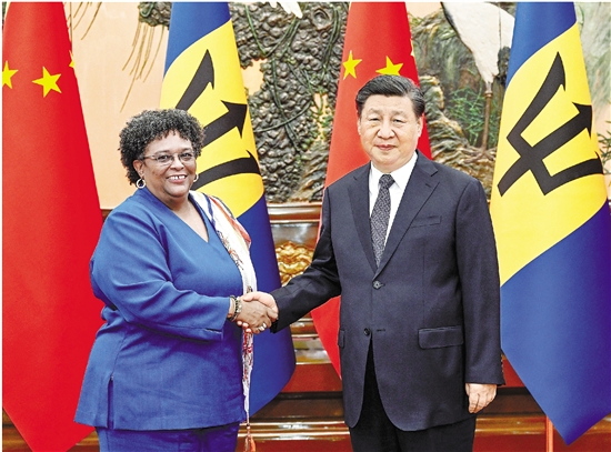 6月27日下午,国家主席习近平在北京人民大会堂会见来华进行正式访问的巴巴多斯总理莫特利。 新华社记者 李学仁 摄