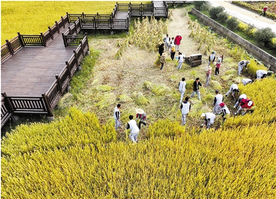 | ▲ 10月25日,在湖州市现代农业技术学校的实训基地,学生在体验收割水稻。每年秋季,该校在稻田里开展“劳动课堂进田间”活动,让学生们感受劳动的艰辛和丰收的喜悦。 何伟卫 文/摄 |