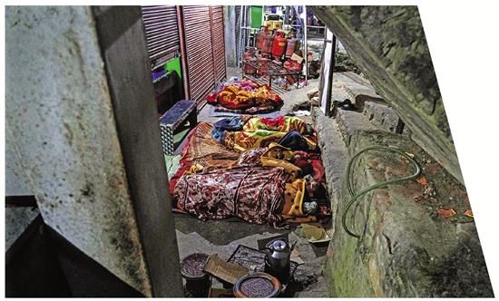 11月4日,在尼泊尔扎泽尔果德,居民们在室外睡觉。尼泊尔警方4日说,尼西部3日午夜发生的地震已造成157人死亡,另有约170人受伤。 新华社发