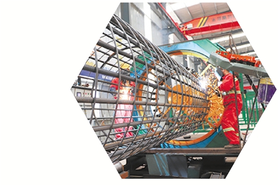 甬金衢上金华城区段工人在高速公路进行钢筋笼焊接