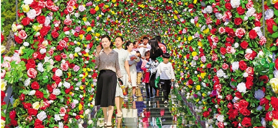 日前,岩下潘村情人谷景区举办“1314空中花园”活动。 三门县委组织部供图