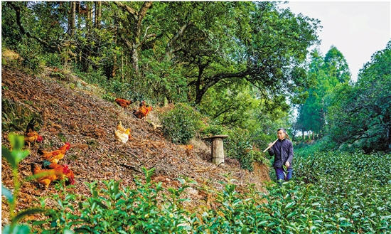仙居古杨梅群复合种养系统的“梅-茶-鸡-蜂”复合种养模式。 仙居县农业农村局供图