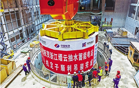 | 12月11日,国网新源浙江缙云抽水蓄能电站首台机组定子顺利吊装完成,比合同工期计划提前4个多月,这标志着缙云电站机电安装工程取得阶段性成果。 据悉,缙云电站为日调节抽水蓄能电站,总装机容量180万千瓦,安装6台单机容量30万千瓦可逆式水泵水轮机组。该电站作为浙江省重点工程,计划于2024年年底首台机组并网发电。 本报记者 李震宇 拍友 汪峰立 摄 |