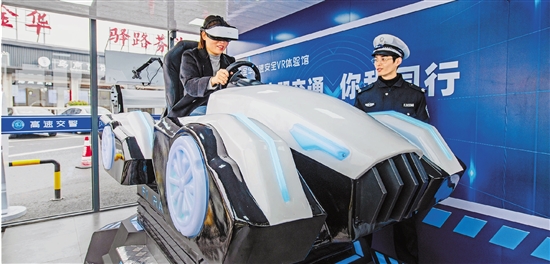 | 浙江省首个高速安全VR体验馆日前在G60沪昆高速金华服务区正式启用。体验馆运用VR技术、模拟交通驾驶环境,还原各种险情和安全事故场景,为司乘人员提供特殊的“安全体验课堂”。图为司乘人员在VR赛车上体验。 拍友 胡肖飞 摄 |