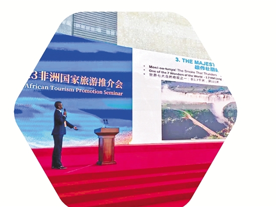11月13日,2023非洲国家旅游推介会在义乌举行,图为非洲国家外交官推介非洲旅游。