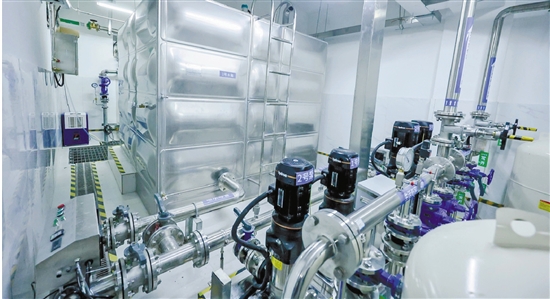 人防助力社区共富项目。图为万寿亭公寓“平战结合”,利用防空地下室设置的二次供水设备。
