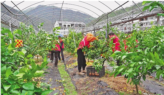 12月16日,为应对寒潮影响,泰顺县里光村的果园内,10余名党员志愿者帮助农户抢收橙子。 拍友 周汉祥 吴经磊 摄