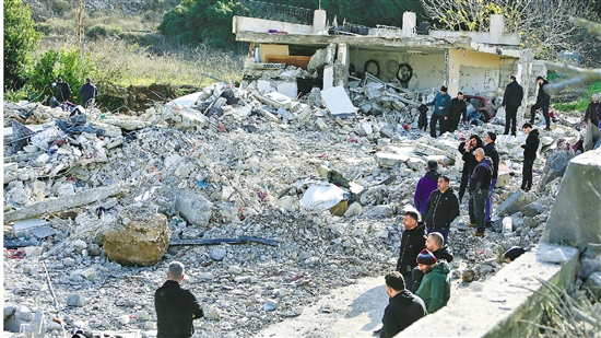 12月27日,黎巴嫩宾特朱拜勒,以军空袭后的景象。 新华社发
