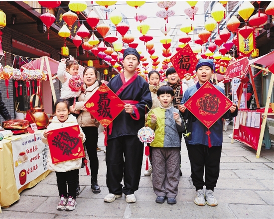 1月1日,桐庐县非遗共富集市暨2024非遗年货节在分水镇武盛古街热闹开市。