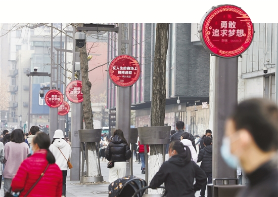 1月1日,“新年Flag”在杭州市上城区湖滨步行街滚动播放。 拍友 马丁 摄