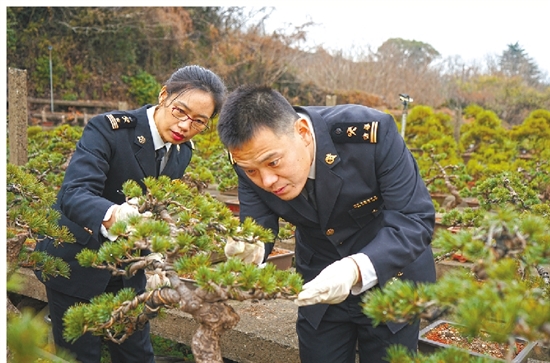 甬江海关工作人员对出口苗木开展查验 王瑞 摄