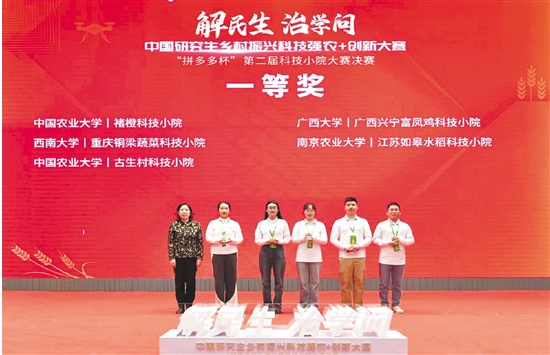 中国学位与研究生教育学会副秘书长赵瑜为五支一等奖队伍颁奖 赛事组委会供图