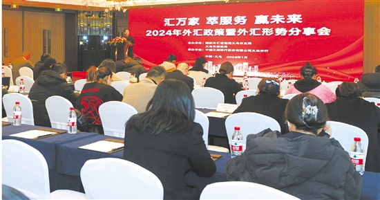 由国家外汇管理局义乌市支局和义乌市商务局主办、工行义乌分行承办的开年首场外汇政策暨外汇形势分享会现场。 杨飞 摄