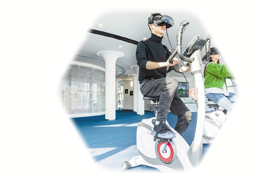 市民在永宁幸福科学馆体验VR自行车互动项目