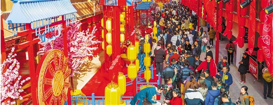 今年春节期间,各地文旅消费火热。图为游客在长兴县龙之梦乐园逛庙会。 拍友 谭云俸 周苏森 摄