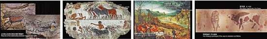 | 纪录片加入很多国外观众熟悉的元素,以更好地引导观者进入纪录片的讲述,引发共鸣。如讲述唐代韩滉的《五牛图》时,便从一万五千年前的拉斯科洞窟壁画中牛的形象切入,再到公元前1350年古埃及的墓穴壁画所呈现的人与牛的关系,再到16世纪荷兰尼德兰地区重要的画家彼得·勃鲁盖尔画中牛的各种神态等(视频截图)。 |