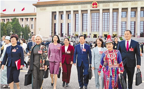 3月11日,第十四届全国人民代表大会第二次会议在北京人民大会堂举行闭幕会。这是闭幕会后,代表们走出人民大会堂。
