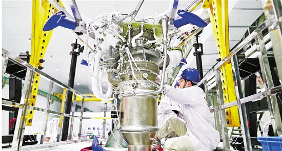 | 4月26日,在位于湖州南太湖新区的蓝箭航天发动机总装工厂,技术人员在组装国内首款百吨级液氧甲烷发动机——天鹊发动机。截至目前,天鹊发动机已完成30余台子样考核,关键技术已全部突破,总装工厂正在加大力度投入生产。 本报记者 李震宇 拍友 项飞 摄 |