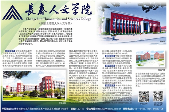 长春人文学院是一所按照国家计划实施全国统一招生的本科层次民办大学,于1988年建校,2020年12月,教育部批准由“东北师范大学人文学院”转设更名为“长春人文学院”。学校秉承“勤奋开拓,自强育才”的理念开展教育教学,学生学习期满,成绩合格,颁发由教育部统一监制、网上电子注册、国家承认学历的长春人文学院毕业证书。符合授予学位条件的,颁发长春人文学院学士学位证书。