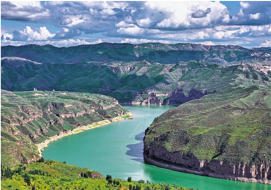▶ 这是8月12日拍摄的老牛湾南侧的一处黄河峡谷(无人机照片)。 新华社记者 连振 摄