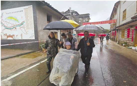 举水乡乡镇干部护送转移照林村行动不便的老人