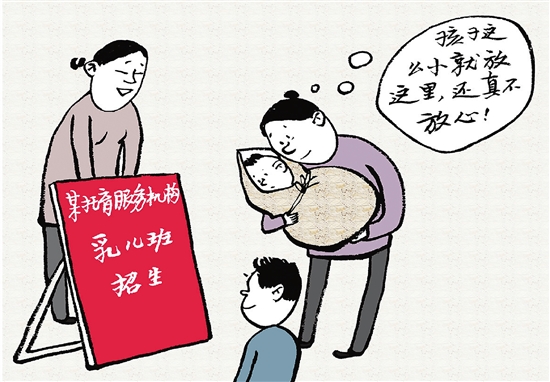 对于双职工家庭来说,0-3岁幼儿的照护是普遍存在的难题。然而,现实中“乳儿班”却存在招不满的情况。媒体调查发现,一个重要原因是家长对幼儿园的安全照护,以及教师责任心等方面的担忧。其实,“乳儿班”并不好办,对服务和监管都有很高要求。如何让“乳儿班”真正成为放心班,切实减轻年轻家庭育儿难,值得探索。 王铎 作 |