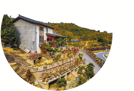 金东区赤松镇大源村,村民自家庭院成为花木展示“T台”。