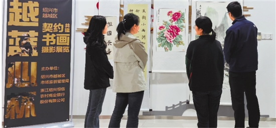 | 近日,绍兴市越城区市场监督管理局与党建联建单位浙江绍兴恒信农村商业银行共同举办的书画摄影展览正式开展,展出作品44幅,涉及中国画、水彩、书法、摄影作品等,主题鲜明,题材多样,展现了越城区干部爱岗敬业、积极向上的风采。 通讯员 李超 摄 |