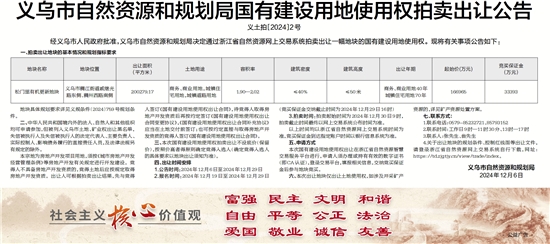 义乌市自然资源和规划局国有建设用地使用权拍卖出让公告
