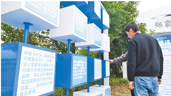 货车司机在湖州长兴G318郑家村公路服务驿站通过“翻翻乐趣味答题”的形式学法