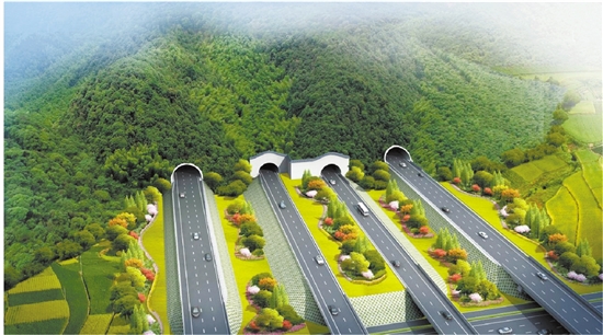 甬金改扩建金华段项目岩坑尖隧道群效果图