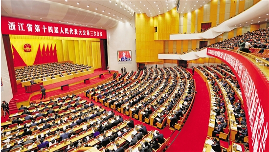 1月14日上午,省十四届人大三次会议在杭州隆重开幕。 本报记者 魏志阳 倪雁强 摄